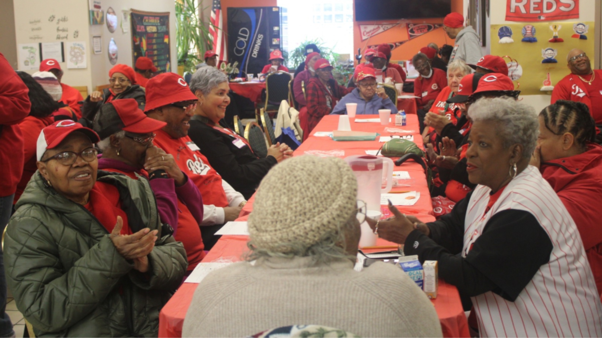 Just as young adults have clubs to gather and socialize, our senior center provides a lively space for older adults to build friendships and stay in touch with the community. Often described by seniors as a “family-oriented” atmosphere and a home away from home, Meals on Wheels’ OTR Senior Center offers a place for seniors to take group trips together, play games, and enjoy meals. A fan-favorite activity is the annual Reds Opening Day celebration, in which seniors don their Reds apparel and spend the day playing games and watching the Opening Day parade. Beyond just fun and games, seniors can also find some education at the Senior Center, like presentations on navigating various aspects of life as an older adult.