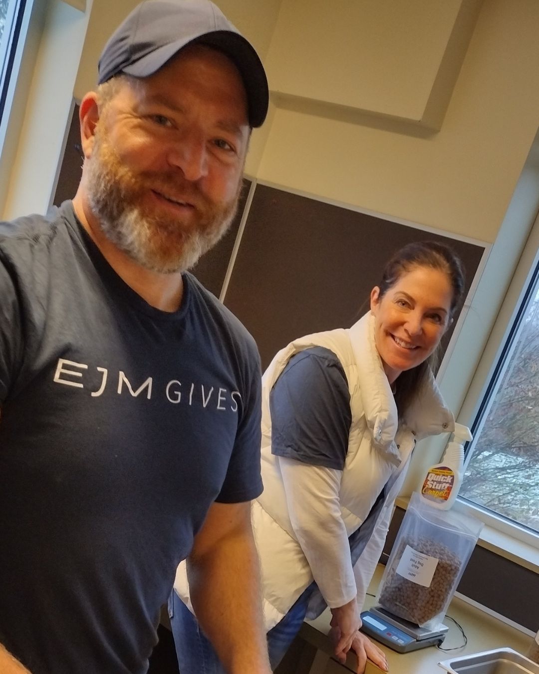For seniors who receive home-delivered meals from us and who also care for a dog or cat, we deliver a week's worth of pet food as part of their regular meal delivery. Volunteers help us scoop, weigh and package dry food in preparation for delivery.